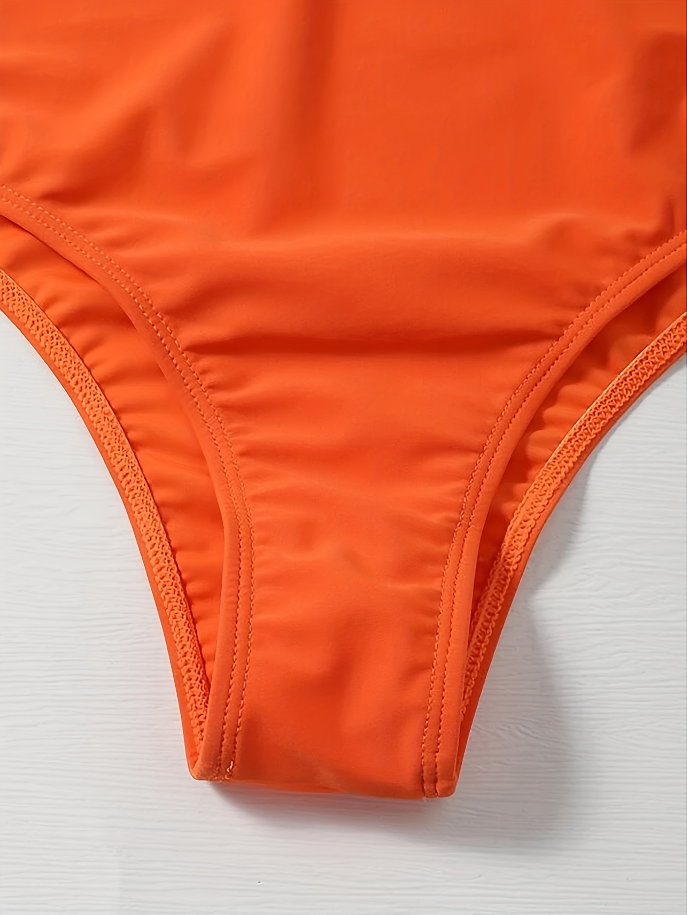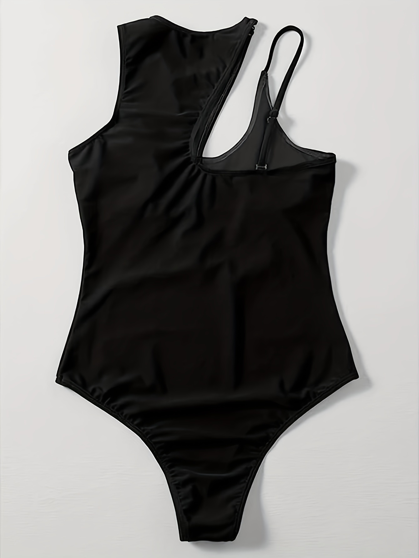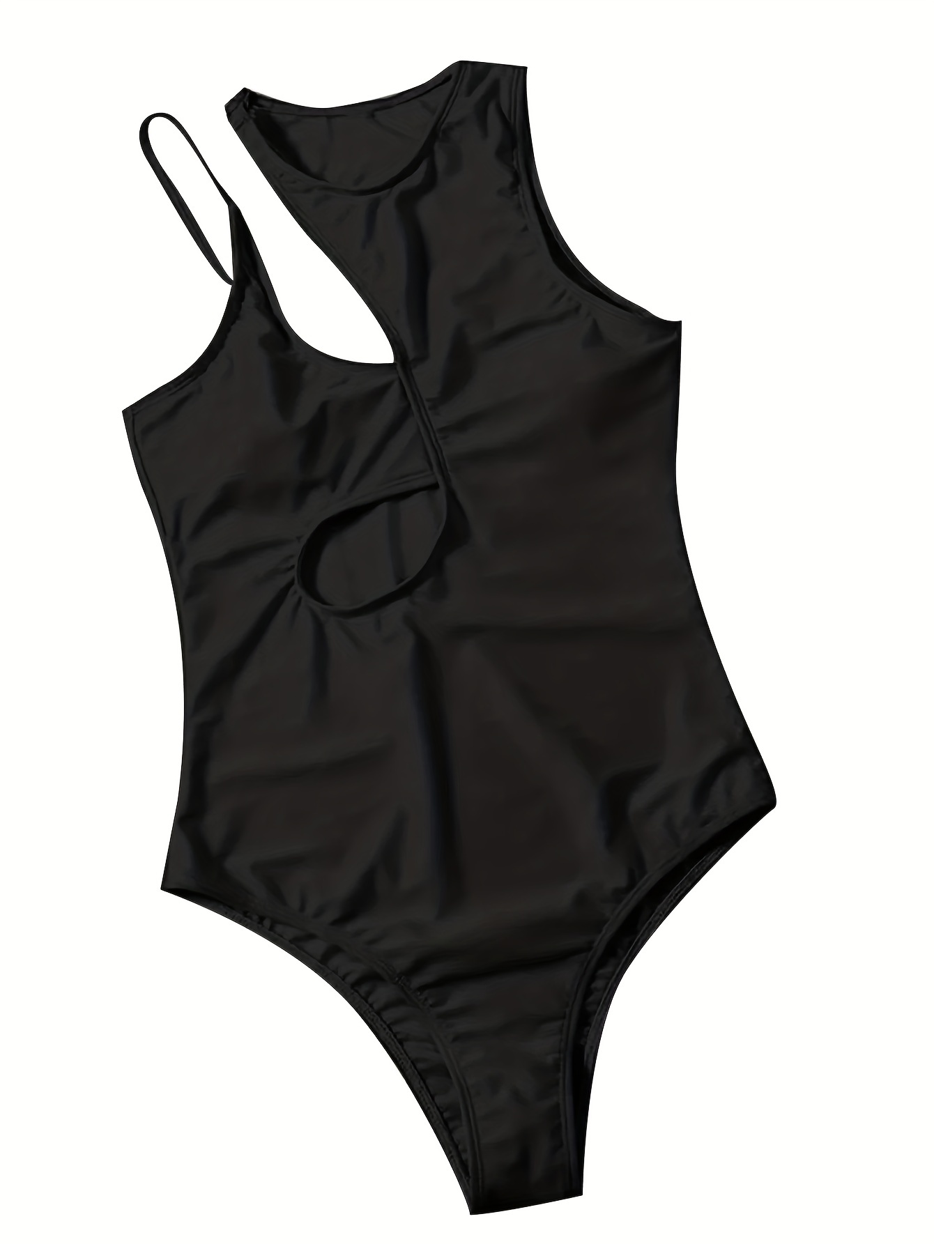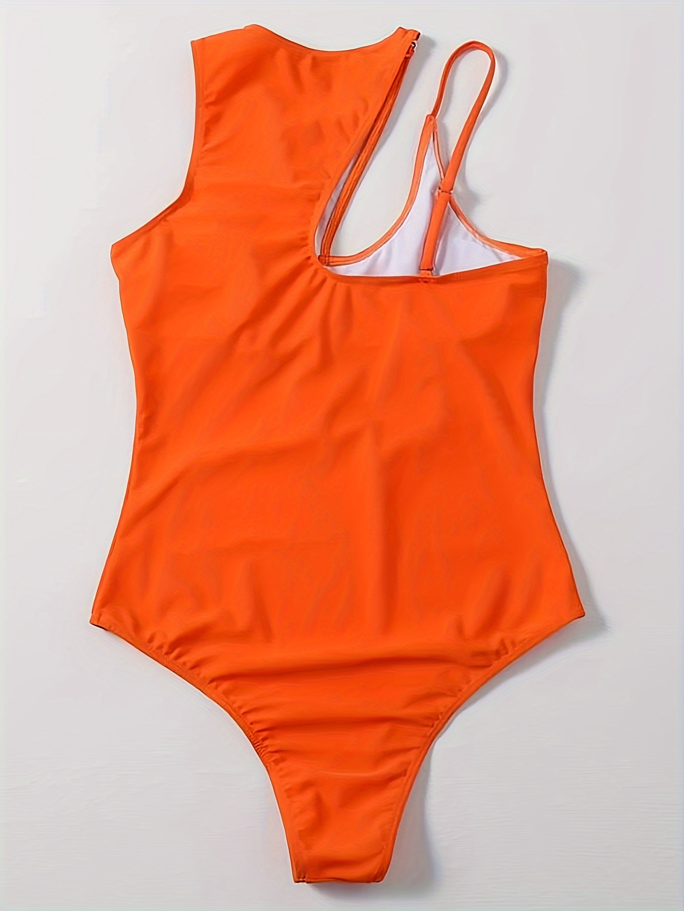 Flattering Asymmetric One Piece Swimsuit - Stretchy & High Cut Design - Solid Color Womens Swimwear for a Chic Beach Look