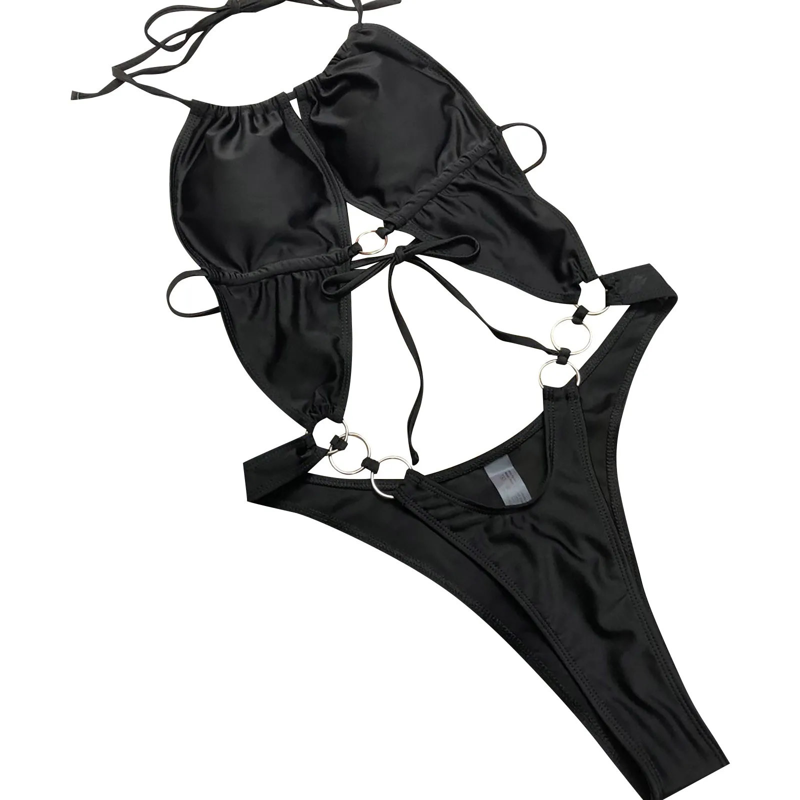 Personality Simple Female Swimsuit Solid Color Lace Up Sexy Bikini