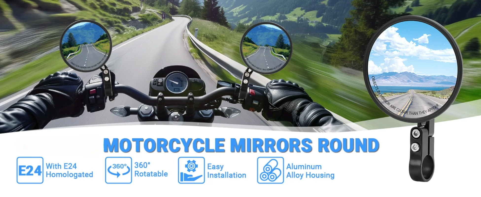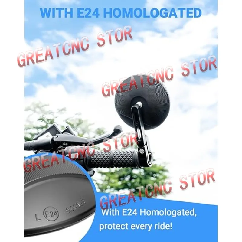 - 【E24 Homologated】Packing List: 2 x Motorcycle Mirrors Round. Certified with E-MARK for safety and reliability. We provide a 12-month warranty and dedicated customer support. If you have any questions, please don’t hesitate to contact us.