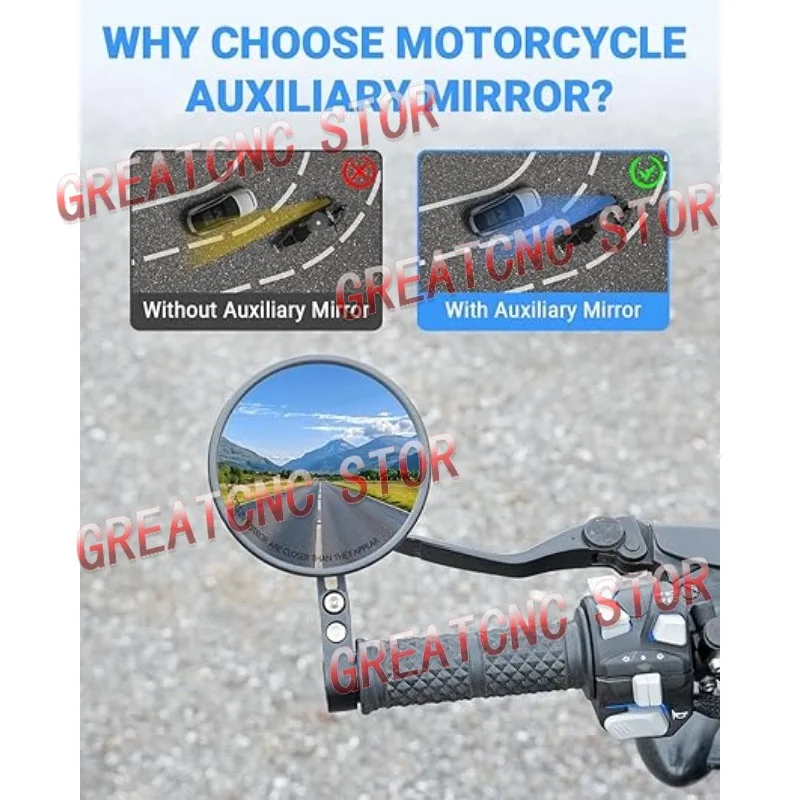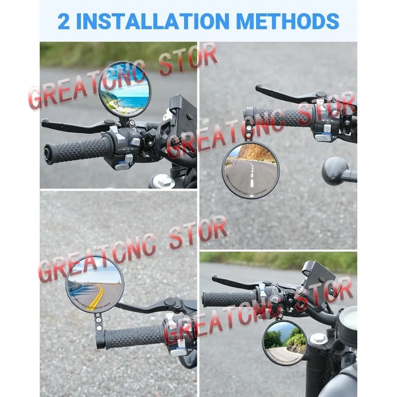 Universal Motorcycle Mirror 360° Rotatable Motorcycle Rear View Side Mirror Round Mirror for Most Motorcycle E-bike Scooters ATV