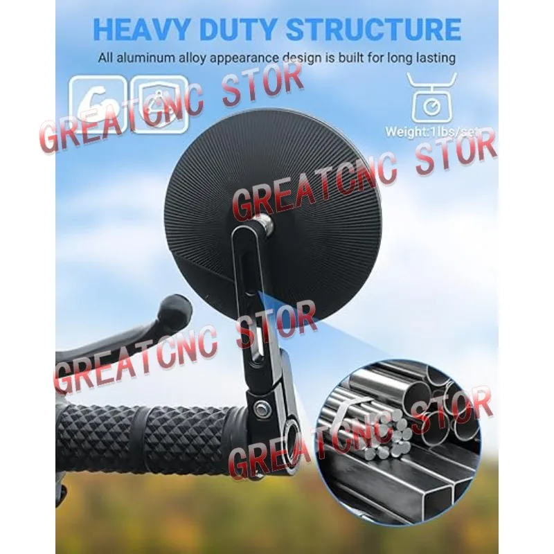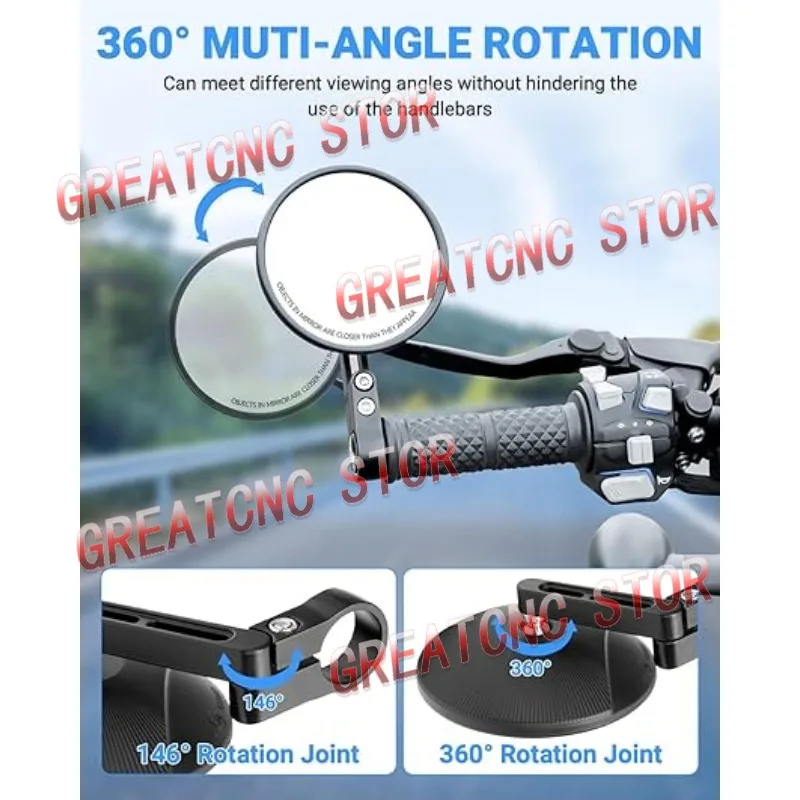 - 【Enhanced Visibility】Motorcycle Mirrors Round offers 360-degree rotation, and the arm can be adjusted 146 degrees to the left or right, which helps increase riding safety by allowing you to check traffic behind or alongside you without frequent head turns. This enables better judgment of distances and vehicle positions, aiding smoother and safer manoeuvring.