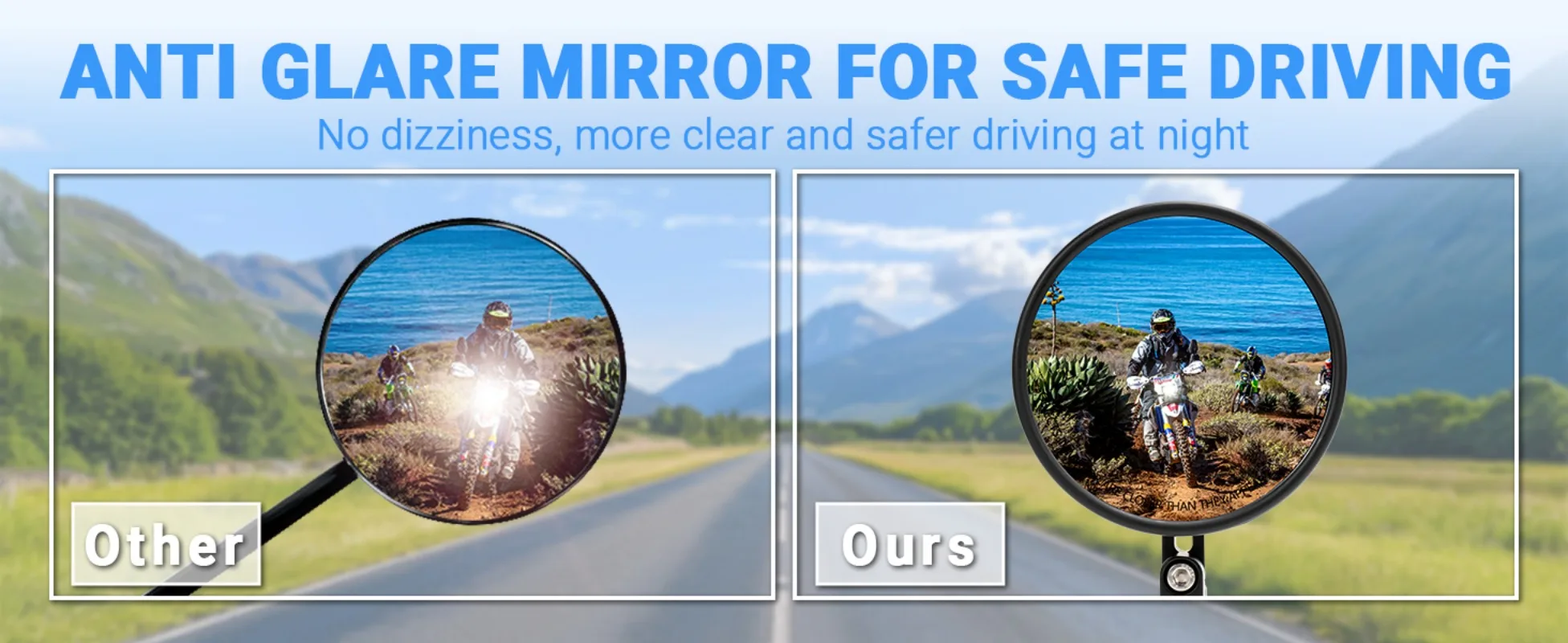 - 【Flexible Installation】Motorcycle Mirrors Round can be fitted either in the middle or at the end of the handlebar, without needing to modify any internal or end accessories. SUPAREE Universal Motorbike Wing Mirrors does not add extra extension to the handlebars, reducing the risk of collisions or scratches when riding on narrow roads. You can also position it upwards or downwards depending on your riding preferences.