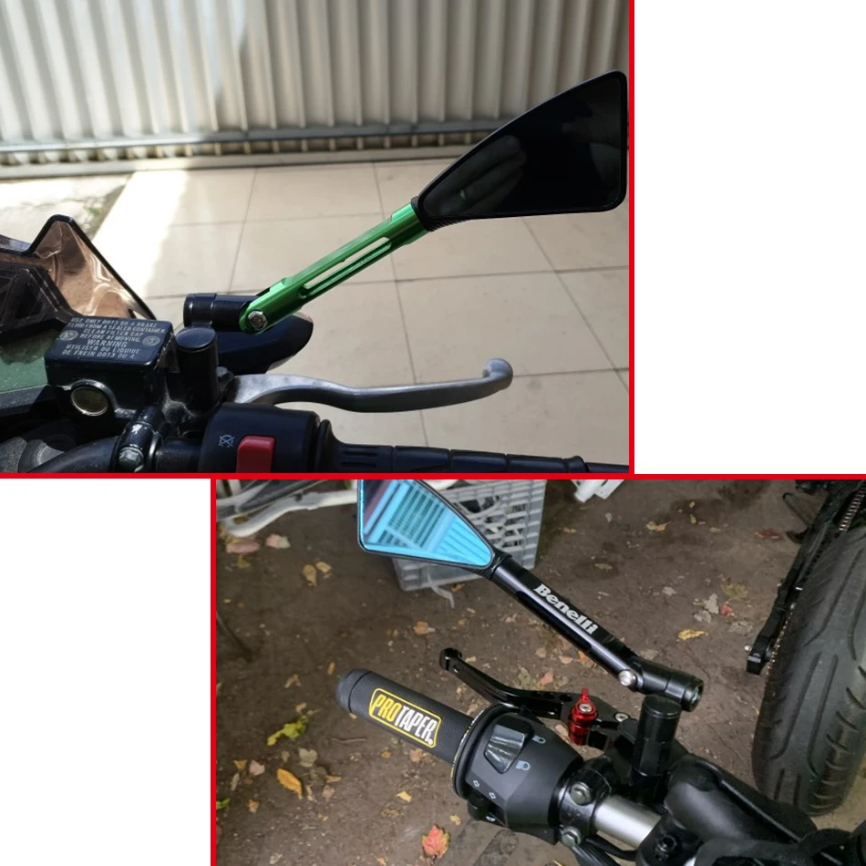 Material: CNC Aluminum housing, transparent glass rearview mirror, aluminum rod,more sturdy